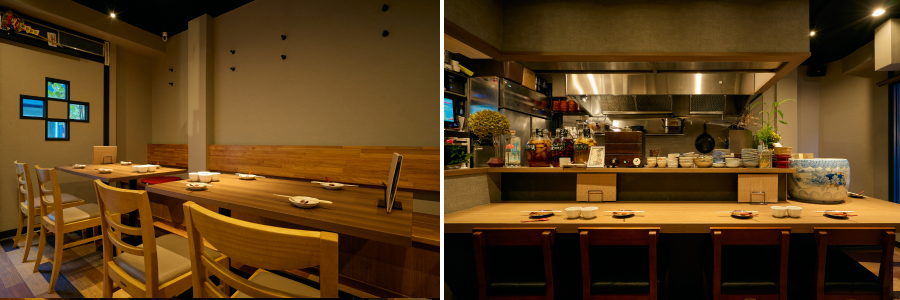 総席数28席。カウンター席やテーブル席、少人数でのご利用に最適な半個室を備えた、こぢんまりとした空間が魅力です。